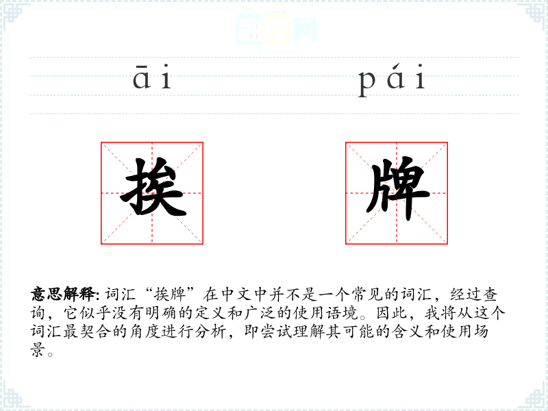 由于“挨牌”不是一个标准词汇,我们可以尝试从字面意思来解释: