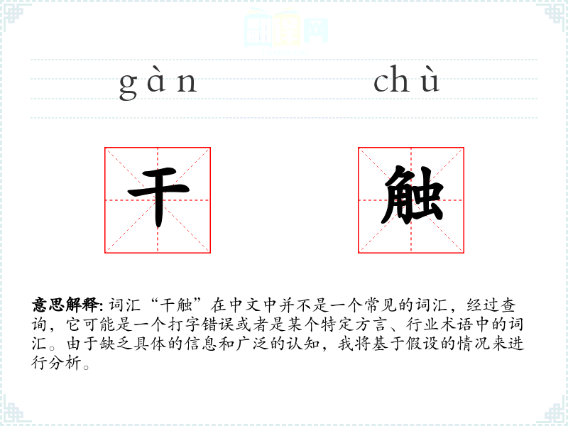 词汇“干触”在中文中并不是一个常见的词汇,经过查询,它可能是一个打字错误或者是某个特定方言、行业术语中的词汇。由于缺乏具体的信息和广泛的认知,我将基于假设的情况来进行分析。