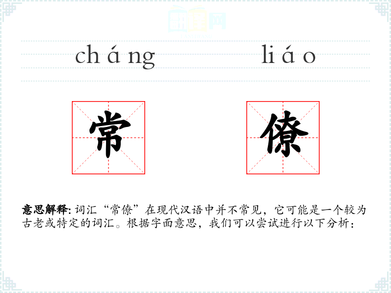 词汇“常僚”在现代汉语中并不常见,它可能是一个较为古老或特定的词汇。根据字面意思,我们可以尝试进行以下分析:
