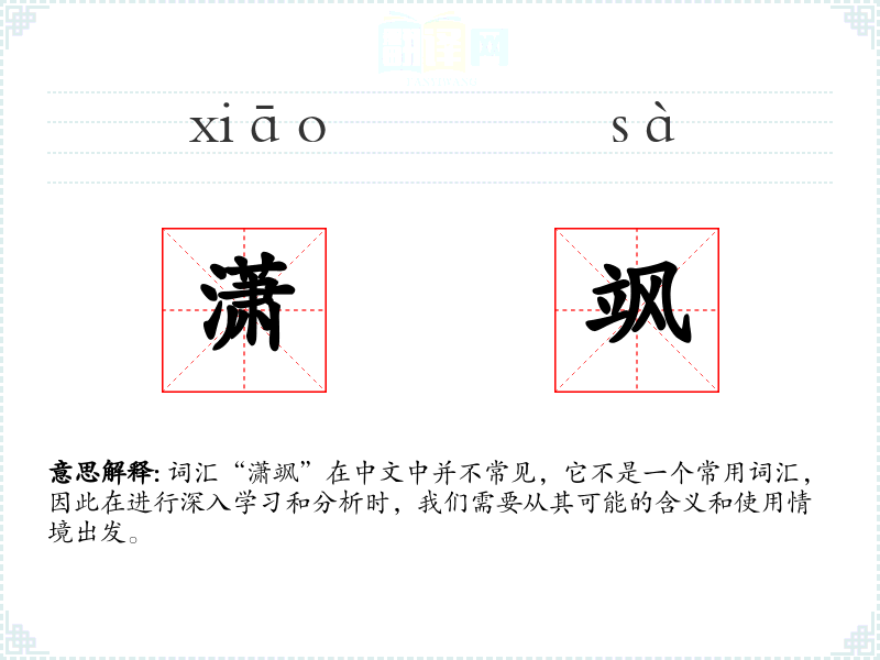 词汇“潇飒”在中文中并不常见,它不是一个常用词汇,因此在进行深入学习和分析时,我们需要从其可能的含义和使用情境出发。