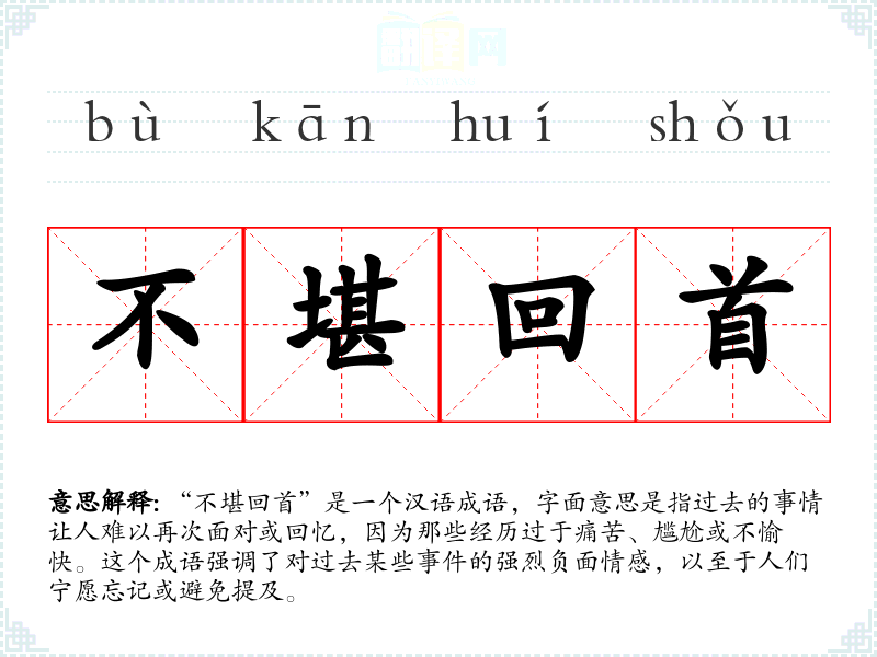 在英语中,类似的表达可能是“painful memories”或“hard to look back on”,虽然不如“不堪回首”那样富有诗意和深度,但也传达了类似的情感和意义。