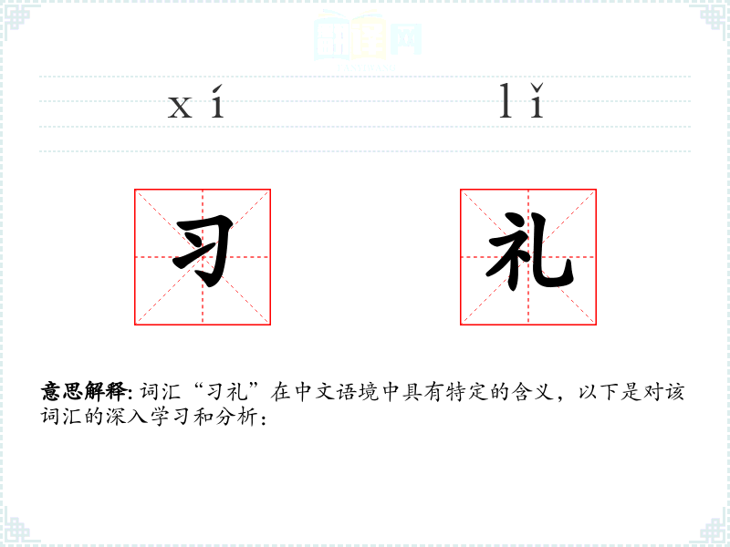"习礼"的意思解释、习礼是什么意思由翻译网汉语词典查词提供。