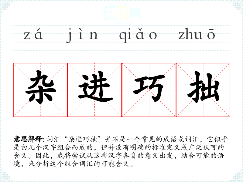 由于“杂进巧拙”不是一个标准词汇,它的词源和演变无从考证。