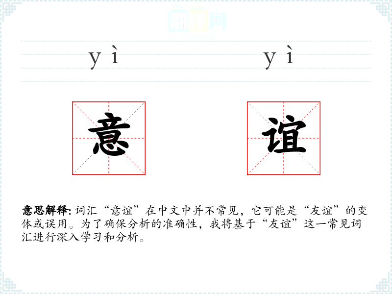 词汇“意谊”在中文中并不常见,它可能是“友谊”的变体或误用。为了确保分析的准确性,我将基于“友谊”这一常见词汇进行深入学习和分析。
