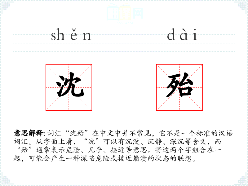 由于“沈殆”不是一个标准词汇,我们只能根据字面意思推测其可能的含义:深陷危险或接近崩溃的状态。