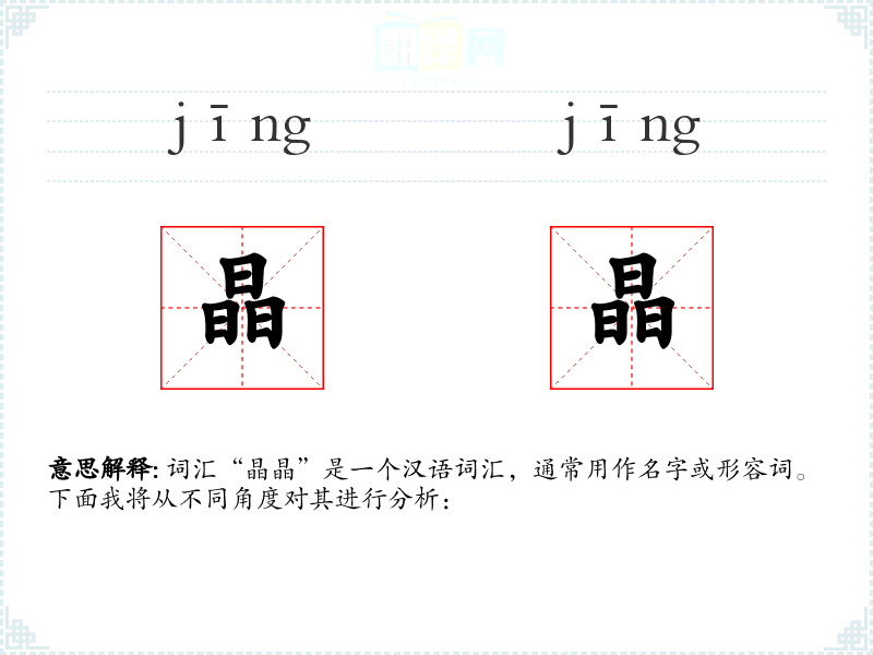 - “晶”字源自古代汉语,原指水晶或晶体。