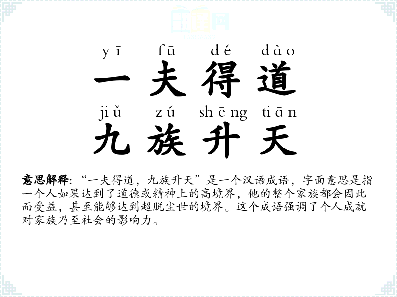 - yī fū dé dào,jiǔ zú shēng tiān一夫得道,九族升天