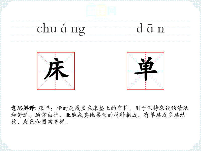 床单的分字解释