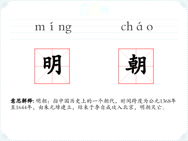 - 反义词:清朝(明朝的后继朝代)