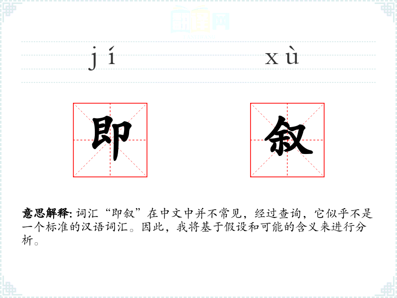 词汇“即叙”在中文中并不常见,经过查询,它似乎不是一个标准的汉语词汇。因此,我将基于假设和可能的含义来进行分析。