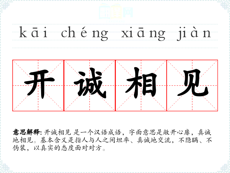 - 专业领域:在商业谈判或团队合作中,开诚相见强调的是透明和诚信,有助于建立信任和高效沟通。