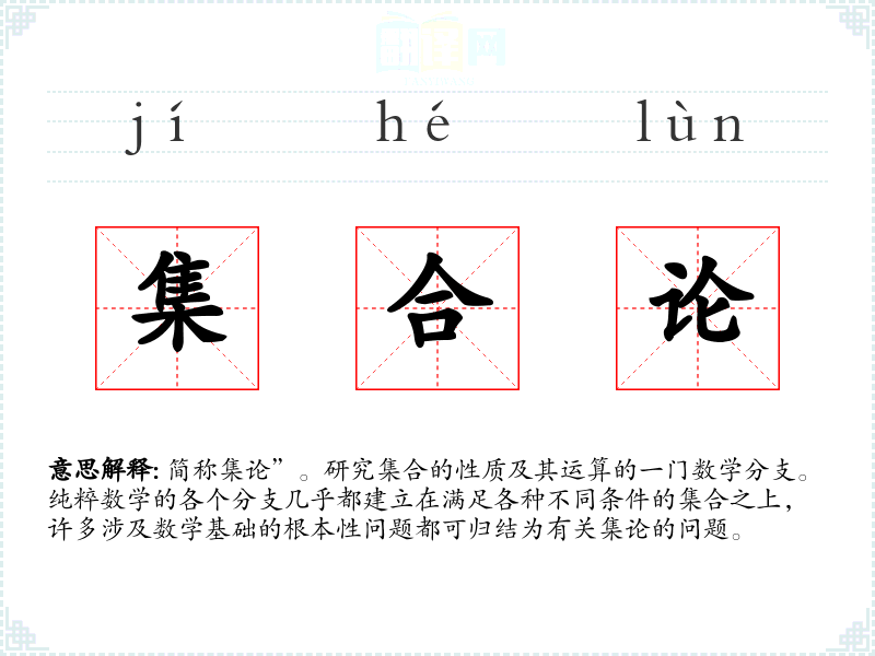 简称集论”。研究集合的性质及其运算的一门数学分支。纯粹数学的各个分支几乎都建立在满足各种不同条件的集合之上,许多涉及数学基础的根本性问题都可归结为有关集论的问题。