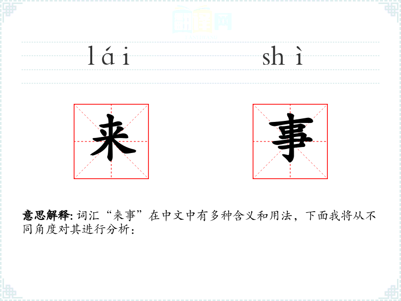 “来事”一词的词源较为直接,由“来”和“事”两个字组成,表示事情的到来。在古代文献中,这个词的使用并不常见,更多是在现代汉语中被广泛使用。