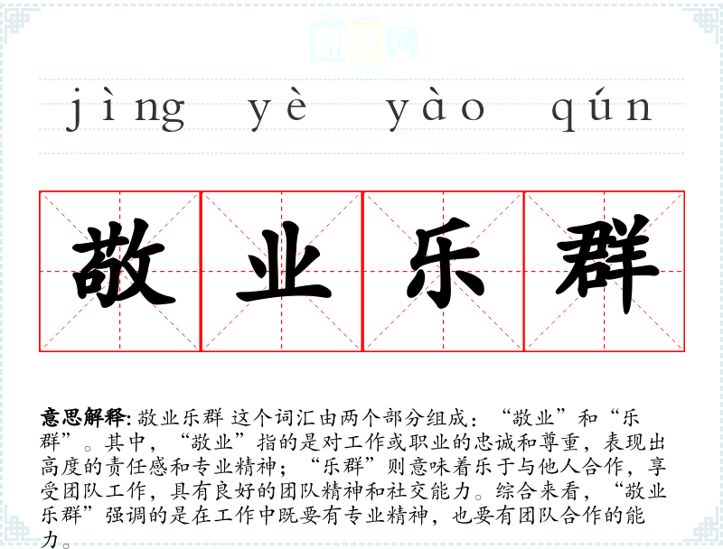 “敬业乐群”这个词汇在中文中有着悠久的历史,其字面意思直接反映了其含义。随着社会的发展,这个词汇的内涵也在不断丰富,特别是在现代职场文化中,它被赋予了更多的现代意义和应用场景。