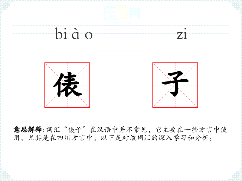 词汇“俵子”在汉语中并不常见,它主要在一些方言中使用,尤其是在四川方言中。以下是对该词汇的深入学习和分析: