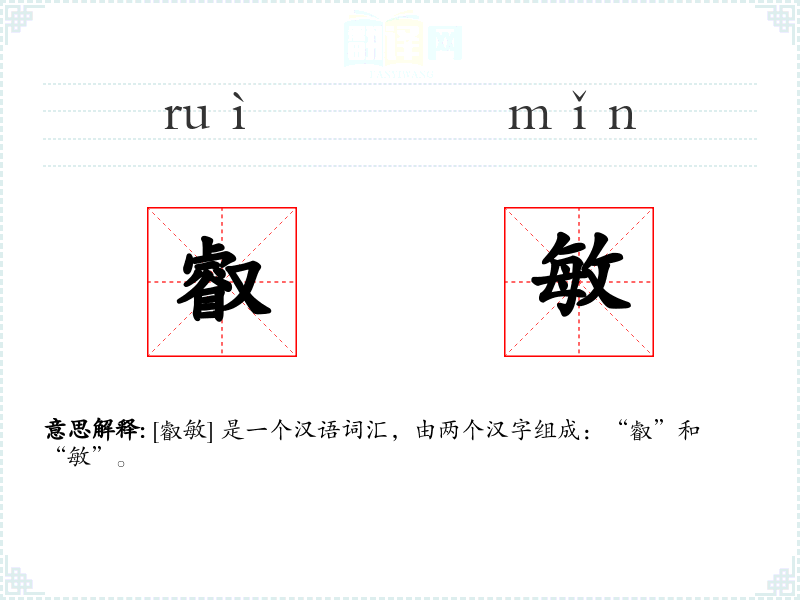 [叡敏] 是一个汉语词汇,由两个汉字组成:“叡”和“敏”。