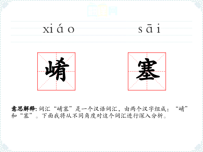 词汇“崤塞”是一个汉语词汇,由两个汉字组成:“崤”和“塞”。下面我将从不同角度对这个词汇进行深入分析。