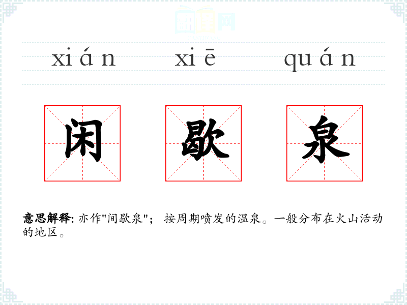 闲歇泉的分字解释