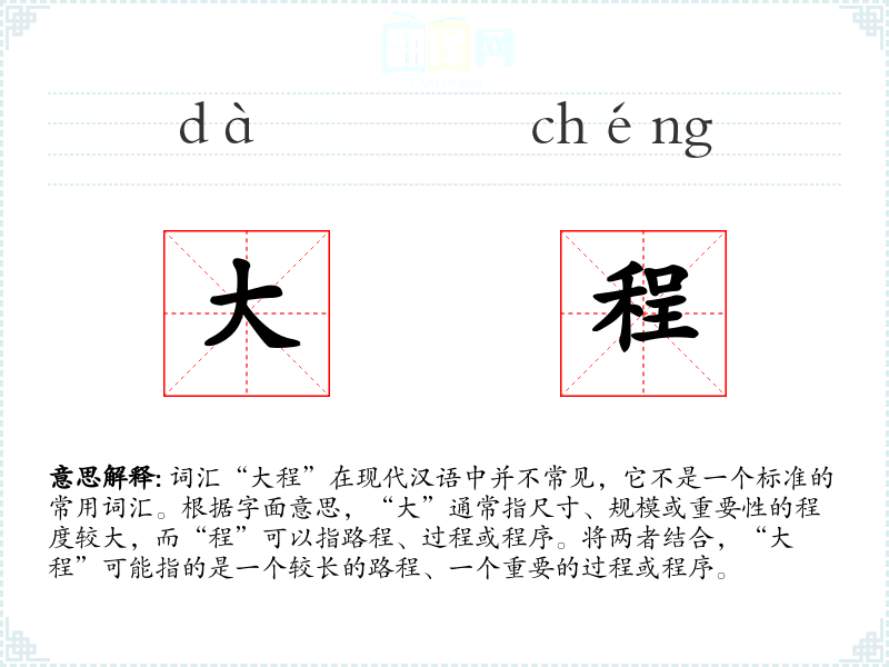 在其他语言中,可能没有直接对应“大程”的词汇,因为它不是一个常用词汇。