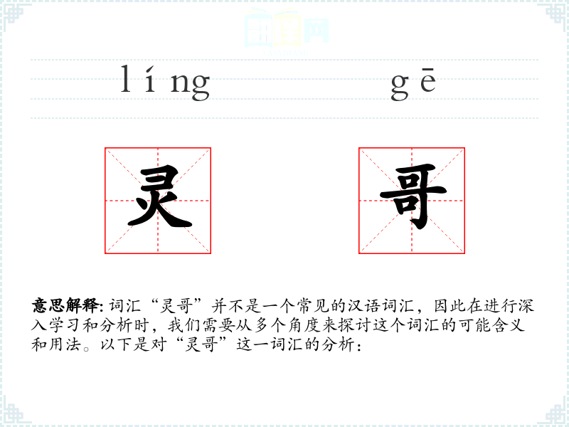 词汇“灵哥”并不是一个常见的汉语词汇,因此在进行深入学习和分析时,我们需要从多个角度来探讨这个词汇的可能含义和用法。以下是对“灵哥”这一词汇的分析: