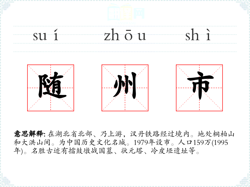 在湖北省北部、乃上游,汉丹铁路经过境内。地处桐柏山和大洪山间。为中国历史文化名城。1979年设市。人口159万(1995年)。