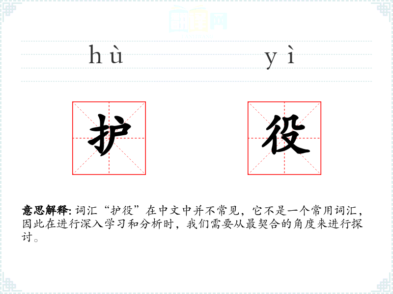 词汇“护役”在中文中并不常见,它不是一个常用词汇,因此在进行深入学*和分析时,我们需要从最契合的角度来进行探讨。