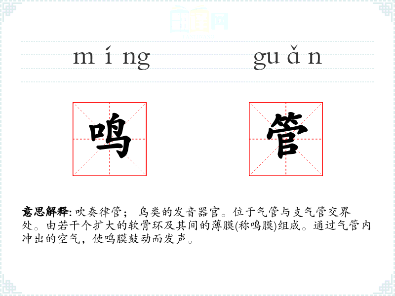 鸣管的分字解释