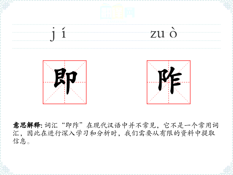 词汇“即阼”在现代汉语中并不常见,它不是一个常用词汇,因此在进行深入学*和分析时,我们需要从有限的资料中提取信息。