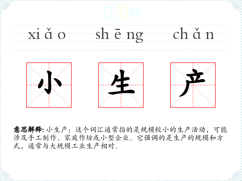 小生产:这个词汇通常指的是规模较小的生产活动,可能涉及手工制作、家庭作坊或小型企业。它强调的是生产的规模和方式,通常与***工业生产相对。