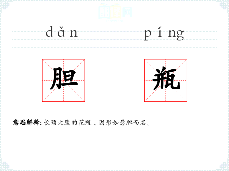 长颈大腹的花瓶﹐因形如悬胆而名。
