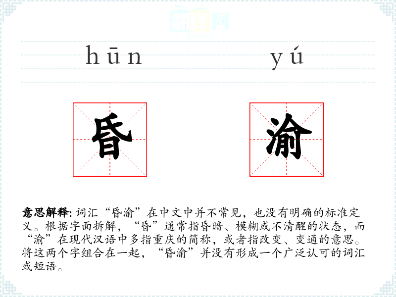 词汇“昏渝”在中文中并不常见,也没有明确的标准定义。根据字面拆解,“昏”通常指昏暗、模糊或不清醒的状态,而“渝”在现代汉语中多指重庆的简称,或者指改变、变通的意思。将这两个字组合在一起,“昏渝”并没有形成一个广泛认可的词汇或短语。
