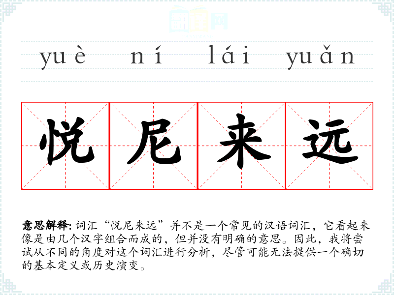 由于“悦尼来远”不是一个已知的词汇,我们无法探讨它的词源和历史演变。