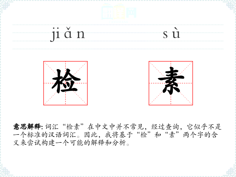 词汇“检素”在中文中并不常见,经过查询,它似乎不是一个标准的汉语词汇。因此,我将基于“检”和“素”两个字的含义来尝试构建一个可能的解释和分析。