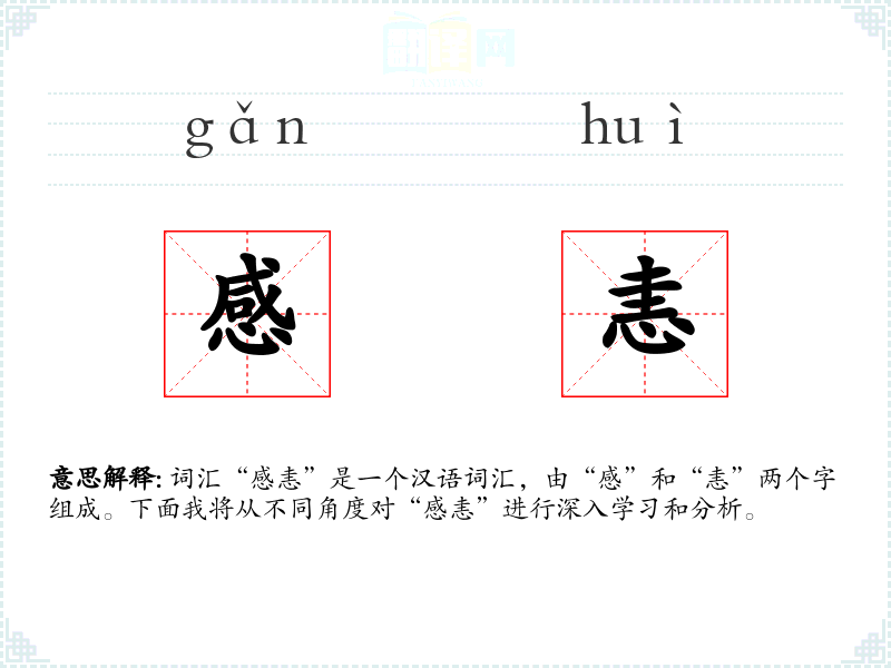 词汇“感恚”是一个汉语词汇,由“感”和“恚”两个字组成。下面我将从不同角度对“感恚”进行深入学*和分析。