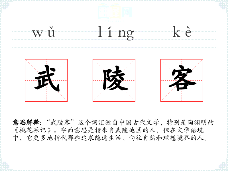 “武陵客”这个词汇源自**古代文学,特别是陶渊明的《桃花源记》。字面意思是指来自武陵地区的人,但在文学语境中,它更多地指代那些追求隐逸生活、向往自然和理想境界的人。