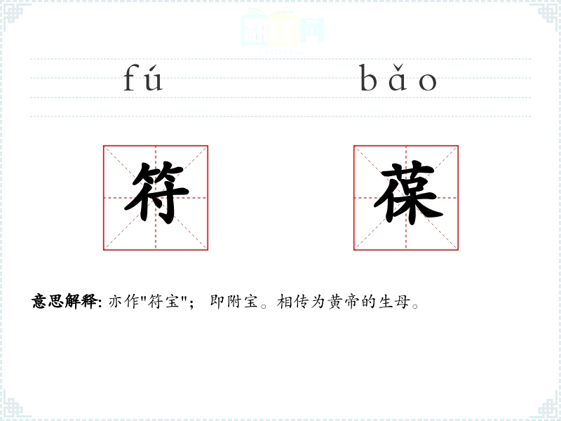 亦作"符宝"; 即附宝。相传为黄帝的生母。