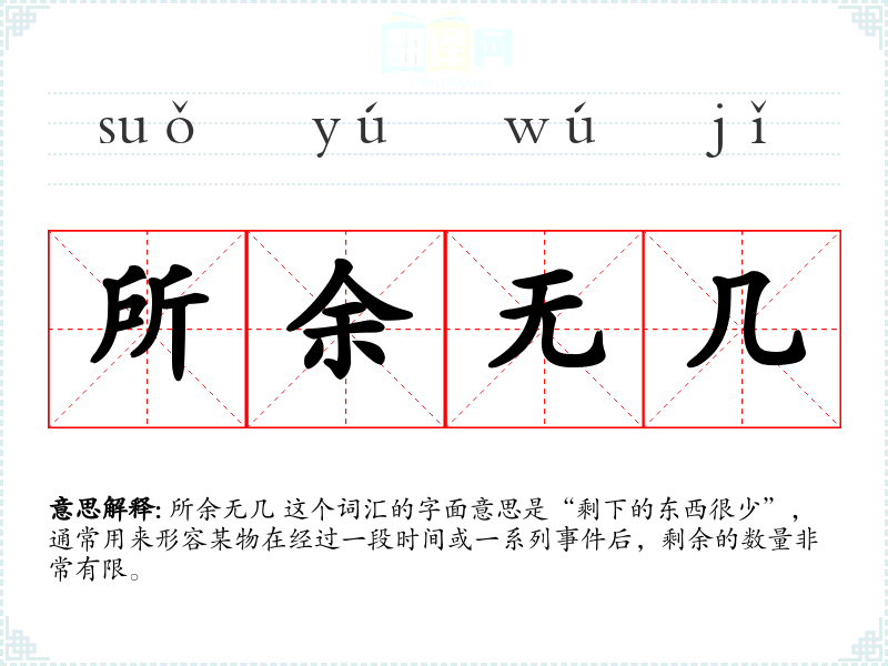 "所余无几"的意思解释、所余无几是什么意思由翻译网汉语词典查词提供。