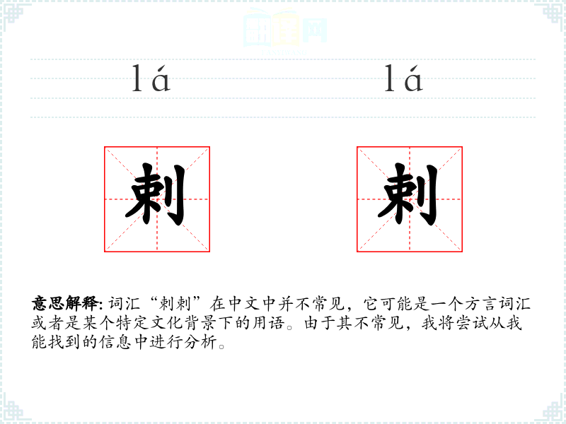 词汇“剌剌”在中文中并不常见,它可能是一个方言词汇或者是某个特定文化背景下的用语。由于其不常见,我将尝试从我能找到的信息中进行分析。