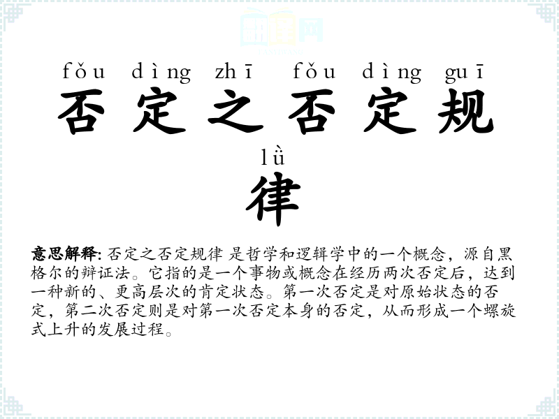 "否定之否定规律"的意思解释、否定之否定规律是什么意思由翻译网汉语词典查词提供。