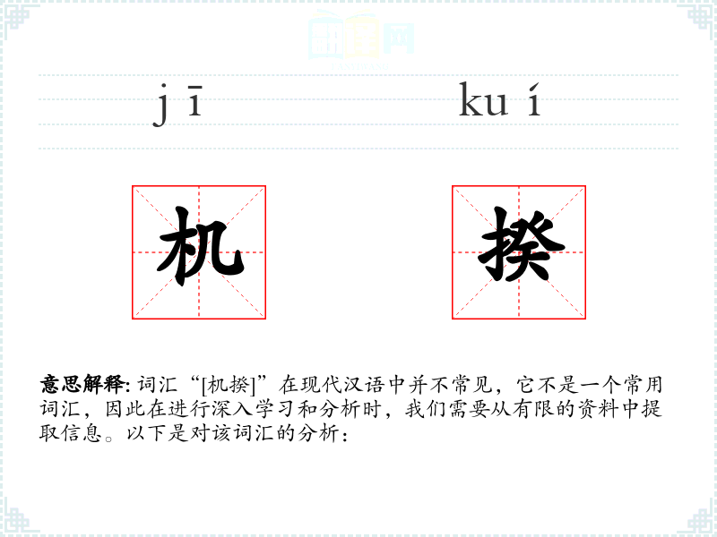 词汇“[机揆]”在现代汉语中并不常见,它不是一个常用词汇,因此在进行深入学习和分析时,我们需要从有限的资料中提取信息。以下是对该词汇的分析: