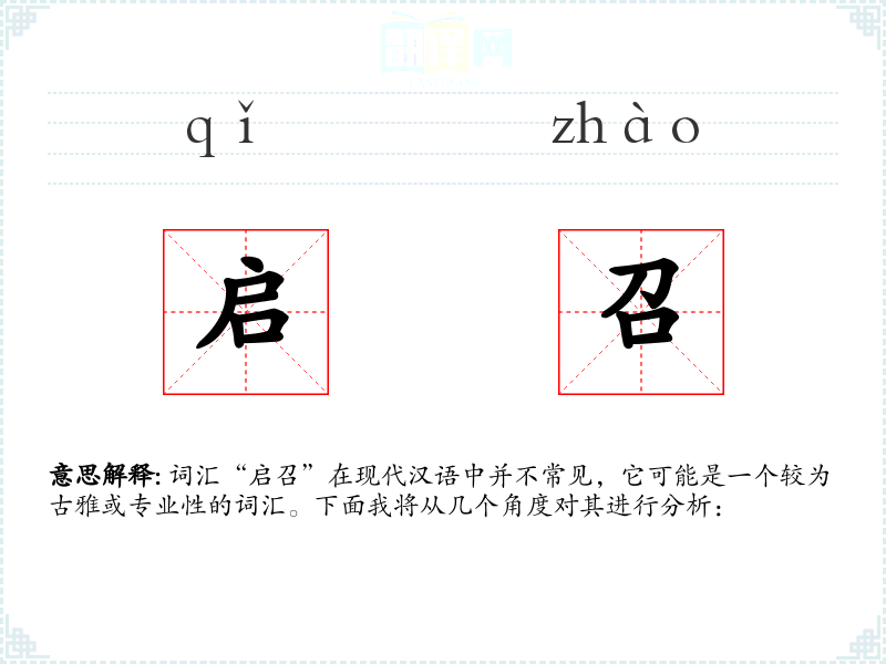 词汇“启召”在现代汉语中并不常见,它可能是一个较为古雅或专业性的词汇。下面我将从几个角度对其进行分析: