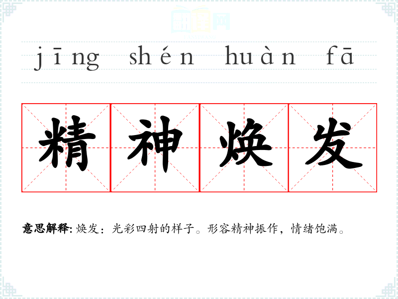 焕发:光彩四射的样子。形容精神振作,情绪饱满。