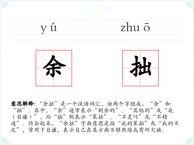 “余拙”这个词在汉语中具有独特的文化内涵和使用场景,它不仅是一种自谦的表达方式,也是一种文化传统的体现。在学*