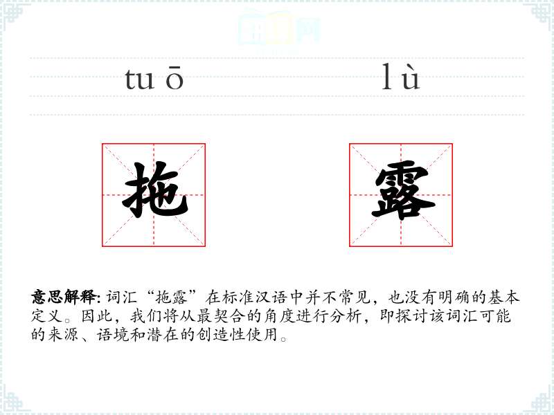 由于“拖露”不是一个标准词汇,我们无法提供确切的基本定义。它可能是某个方言词汇、网络新词或特定社群中的术语。