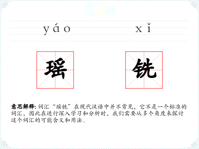 通过对“瑶铣”这个词汇的分析,我们可以看到,即使是一个不常见的词汇,它也可能蕴含着丰富的文化和社会背景。在语言学*和表达中,了解这些词汇背后的故事和意义,可以丰富我们的语言知识和文化视野。
