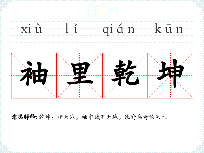 乾坤:指天地。袖中藏有天地。比喻离奇的幻术