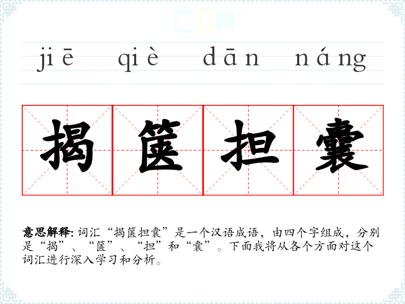 - 理解:揭箧担囊是一个富有画面感的成语,它不仅描述了物理上的准备行为,也反映了心理上的变化和期待。
