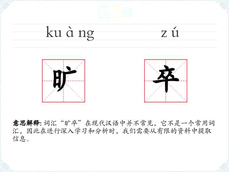 词汇“旷卒”在现代汉语中并不常见,它不是一个常用词汇,因此在进行深入学习和分析时,我们需要从有限的资料中提取信息。