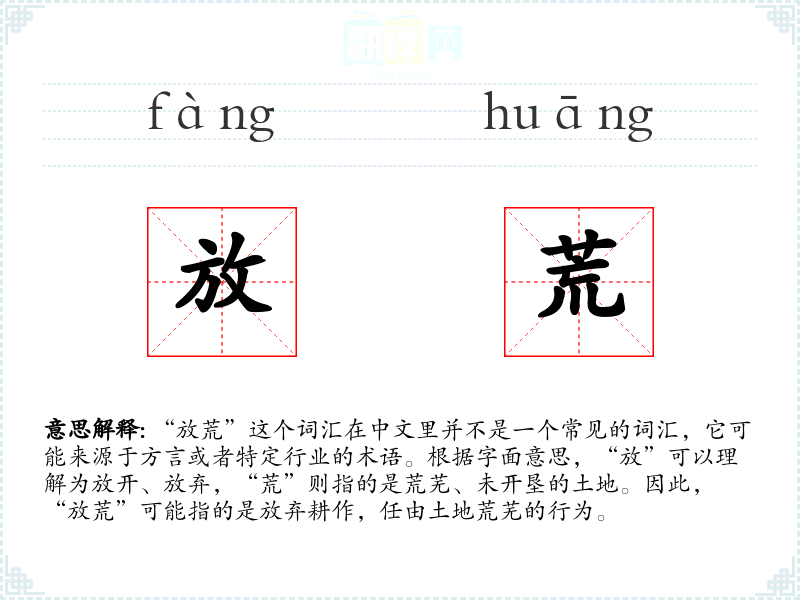由于“放荒”不是一个国际通用的词汇,它在不同语言或文化中可能没有直接对应的词汇。但在其他语言中,可能会有类似的表达,用来描述放弃耕作或荒芜的土地。