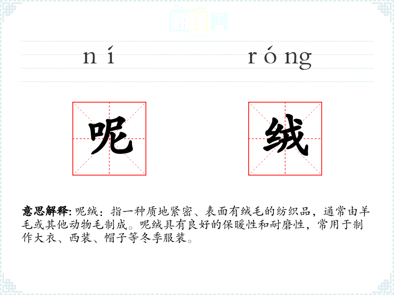 "呢绒"的意思解释、呢绒是什么意思由翻译网汉语词典查词提供。
